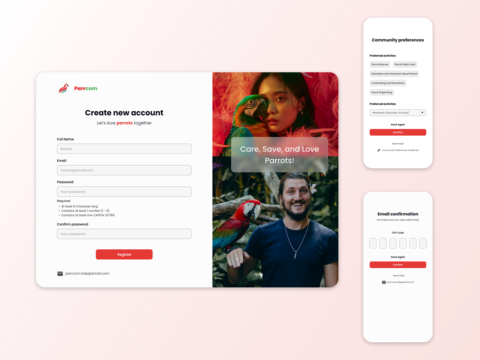 My Challenge The core mission was to break down technical barriers for non-tech-savvy users. I had to weave parrot-themed visual elements and tropical aesthetics into the UI without cluttering the interface. My priority was ensuring the landing page remained lightweight and fully responsive for users coming from high-speed social media environments.